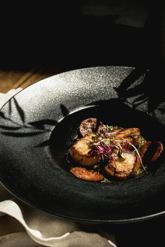 There is no rigid tasting menu here. Instead, dishes are meant to be shared and remembered: slow-cooked black pork, migas reinvented with finesse, seasonal vegetables treated with reverence, and flavors that speak of fire, land, and patience.